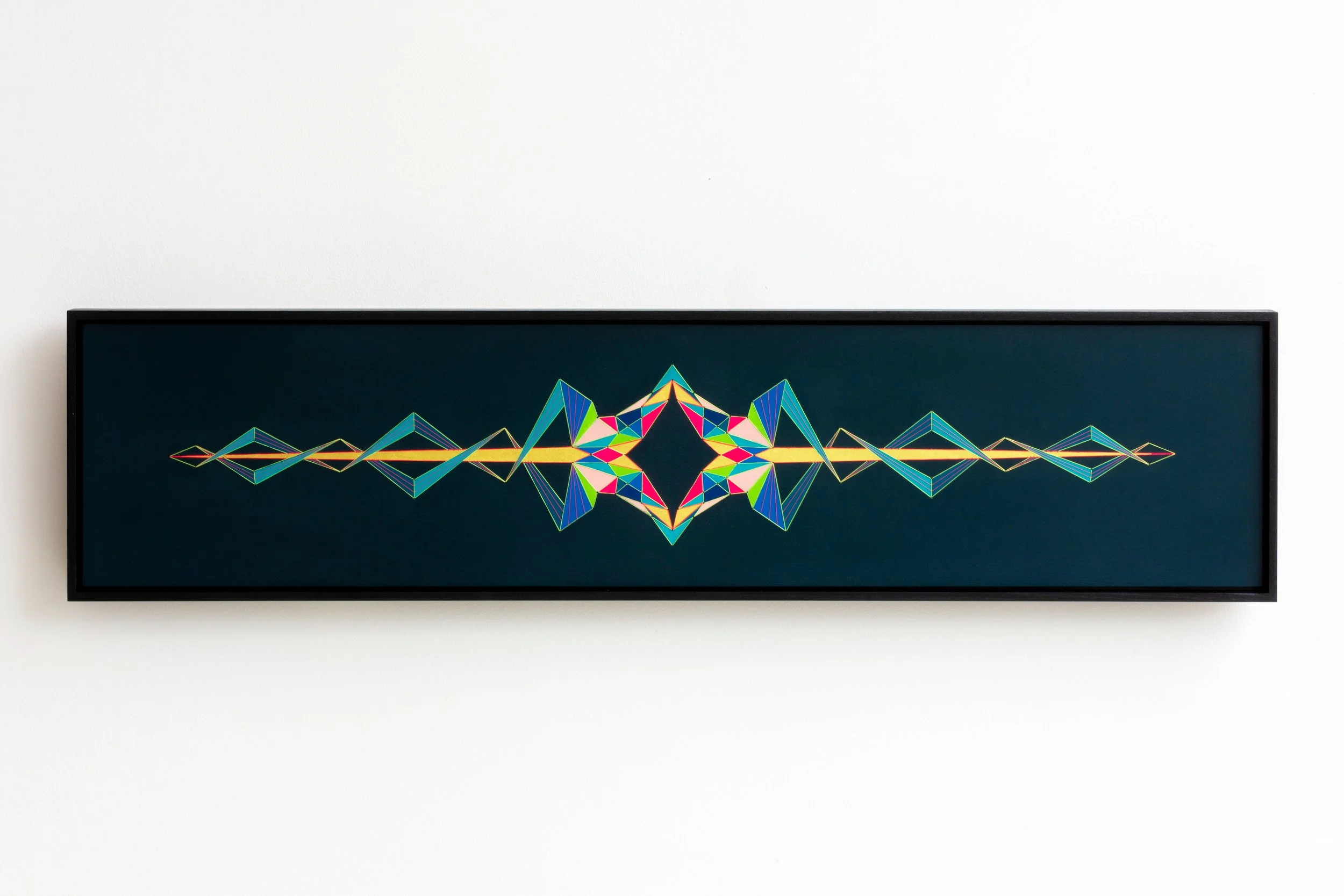 Form from Frequency II24ct gold leaf, acrylic and stitched thread on birch plywood, 92 x 22 cm, 2022. BACK
